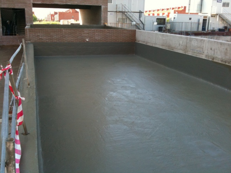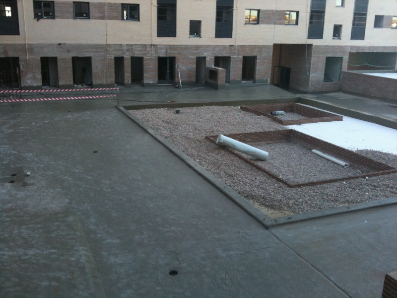 Technical waterproofing of communal areas, parking accesses and green spaces in a private residential complex with sprayed poliurethane membranes. We paid special attention to all the sealing concerning all singular points. After realizing this was the perfect waterproofing for their projects, they repeated this same systems in an adjacent construction of other of their buidlings. Coated Surface: 4.800 m2
