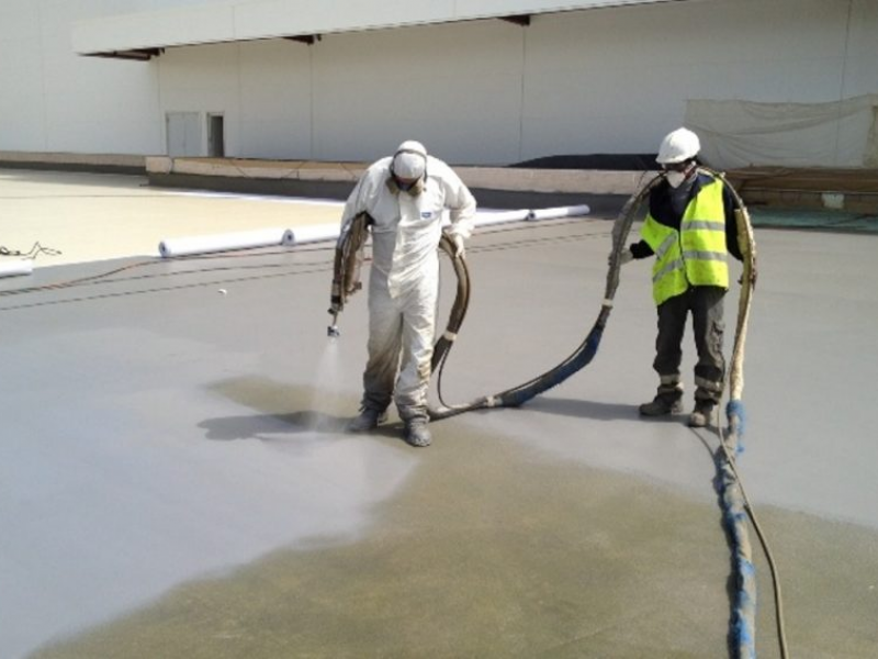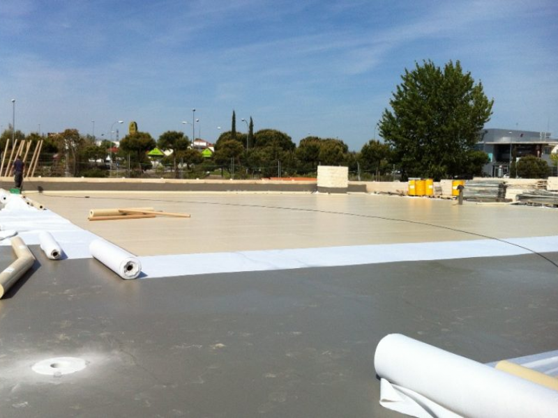 The project consisted of waterproofing on the forging of a parking deck in a new Leroy merlin centre which was built in Majadahonda. We prepared the surface by mechanical sandblasting and epoxidic primer, and the expansive joints were treated with hypalon bands. We then spray the two component poliurethane membrane at high temperature, very recomended in these kind of jobs for its elasticiy, its continuity as it has no joints and becase it is completely adhered to the surface forming a coniunuos lining.