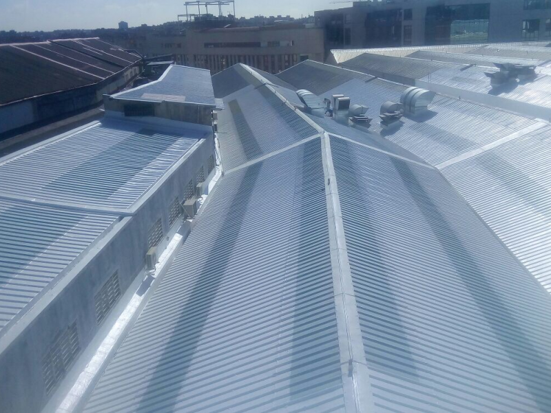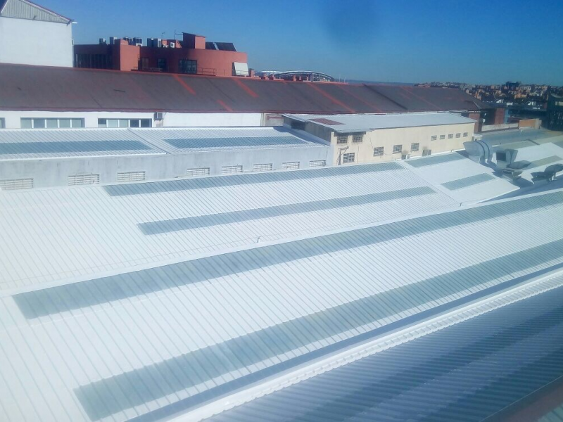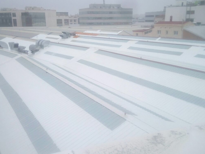 Porcelanosa facilities in Madrid imply a series of showrooms and hardware. We started with a first phase in which we had to perform a number of flexitape sealing jobs, MTC waterproofing systems and finally our sprayed Sikaroof Pro+ system ending with an UV resistant top coat in aproximately 6.000 m2.