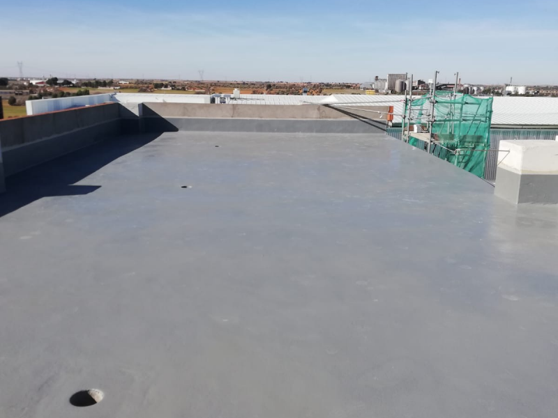 Dentro del sector de la alimentación la gran importancia que tienen las medidas de sanidad e higiene en las instalaciones y procesos hacía obligatorio el tener que confiar en el sistema de impermeabilización más avanzado que existe, la membrana proyectada en caliente que forma una impermeabilización continua y sin juntas ni solapes y que por sus características aguanta la permanente humedad en el soporte y las bajas temperaturas a las que se ven sometidas este tipo de instalaciones.