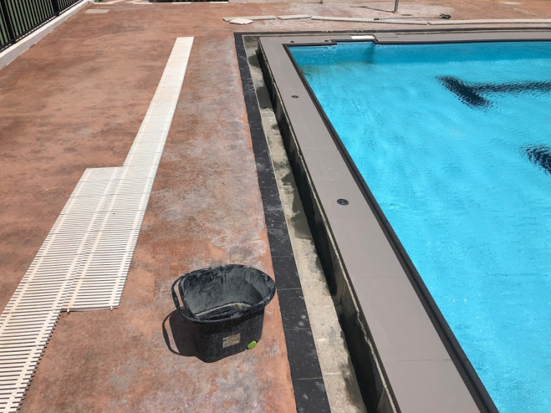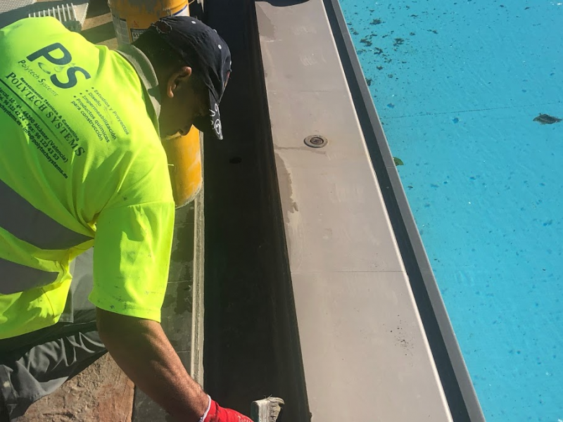Hubo que tratar un problema muy delicado en los canales perimetrales de recirculación de un complejo de piscinas desbordantes en el que los tratamientos que recibía el agua afectaban profundamente al hormigón del que estaban compuestos. Fue muy importante el trabajo de saneamiento y reconstrucción ya que iba a sentar la base de soporte para el tratamiento de protección mediante la impermeabilización con poliureas frías armadas con malla de fibra de vidrio.