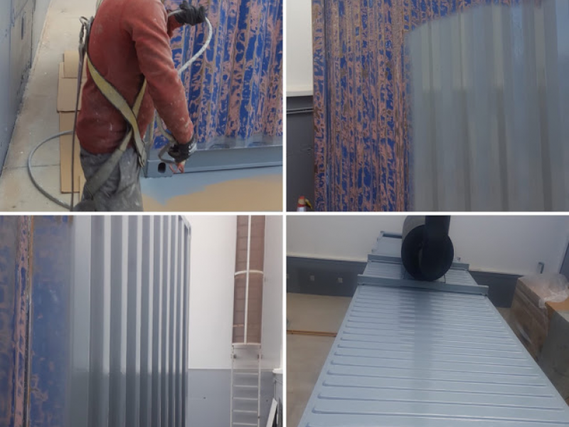Tratamiento anticorrosivo en fachada de paneles metálicos con sistema de categoría de corrosividad CI-5/CM-5 considerado como el de más alta durabilidad, siguiendo en todo momento lo establecido en la normativa internacional EN ISO 12944 para sistemas de pintado de protección anticorrosiva de superficies metálicas.